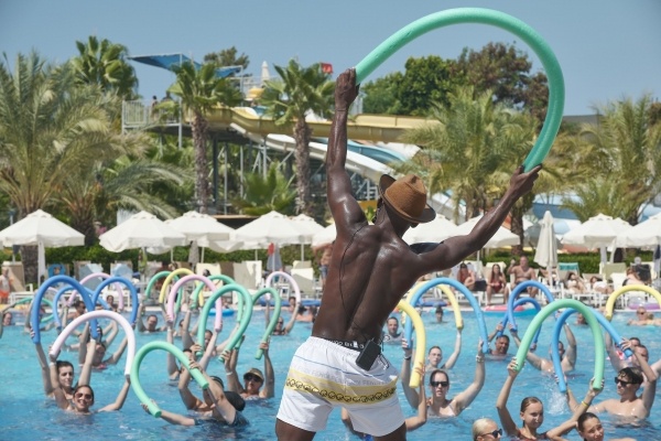 |A vendégek több medencét is találnak. Ezek közül egy bent, 3 pedig kint helyezkedik el. Ezen kívül van gyermekrészleg is. A vízicsúszda kicsiknek és nagyoknak is élményt nyújt. A napozóteraszon ernyőkkel ellátott kényelmes nyugágyak várják a napozni vágyókat. Egy medencebár, illetve egy snackbár is van. A mozgásra vágyók az alábbi lehetőségek közül választhatnak: boccia és strandröplabda. A vízisportok kedvelőit vízi aerobikkal várják. A létesítmény számos beltéri sportolási lehetőséget kínál, például edzőtermet, asztali teniszt, darts-ot, jógát és aerobikot, valamint felár ellenében biliárdot és bowlingot. A szállás wellnessrészlegének szolgáltatásai: szauna, gőzfürdő és törökfürdő, valamint felár ellenében rendelkezésre áll egy szépségszalon és masszázs kezelések. A szabadidős kínálatban szerepelnek továbbá: szórakoztatóprogramok, az élő zene, egy diszkó, egy miniklub, egy minidiszkó és egy éjszakai klub. Copyright GIATA 2004 - 2026. Multilingual, powered by www.giata.com for client no. 703822