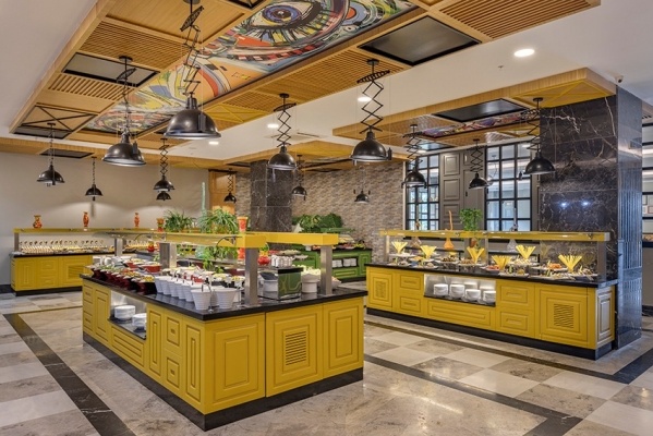 - Ultra All inclusive: reggeli, ebéd és vacsora büférendszerben, késői reggeli, délutáni kávé és sütemények, fagylalt és gofri (meghatározott időpontban), gözleme, éjjeli snack (23:00-00:00 és 01:00-05.00), 3 a'la carte étterem (ázsiai, török, olasz, a tartózkodás során 1 alkalommal, előzetes asztalfoglalással), helyi és néhány import alkoholos és alkoholmentes italok a nap 24 órájában, naponta vízzel, üdítőkkel és sörrel feltöltött minibár.