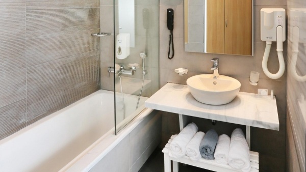 - 2 ágyas pótágyazható, standard szobáiban, telefon, sat-tévé, légkondicionáló, minibár (érkezéskor 1 üveg víz bekészítéssel, egyéb bekészítés térítés ellenében vehető igénybe), balkon/terasz, hajszárító szolgálja a vendégek kényelmét. Széf térítés ellenében kérhető.
