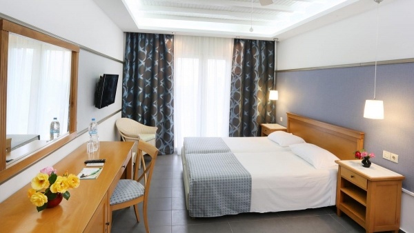 - All inclusive. (Reggeli, ebéd és vacsora büfé rendszerben. Az étkezésekhez helyi italok. Helyi alkoholos és alkoholmentes italok, kávé tea fogyasztása a medence bárban 10:00 és 23:00 között. Napközben snackek, szendvicsek, fagylalt, sütemények, tészták, gyümölcsök, souvlaki a meghatározott időpontokban. Fogyasztás az a'la carte étteremben és a disco bárban helyszíni fizetés ellenében lehetséges.)