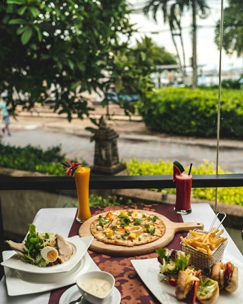 Éttermek: Sunrise Sunset étterem - svédasztalos fogások, thai, kínai, japán és nemzetközi konyha, gyerekülések és gyerekmenü elérhető Bali Hai By The Sea étterem terasszal - svédasztalos és ? la carte fogások, kínai konyha, grillezett ételek és tengeri herkentyűk Siam Elephant étterem/bár terasszal - ? la carte, thai konyha 4 bár, köztük a lobbyban és a medence melletti snack bár