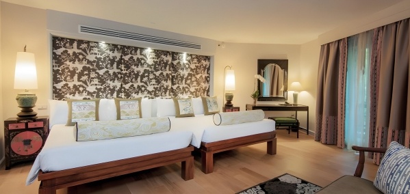 Deluxe szoba medencére néző kilátással 2 fős: (1 pótágy lehetőséggel) kb. 40 m?, a Garden részben, egyénileg szabályozható légkondicionáló, részben üvegfalú fürdőszoba (kád és zuhanyzó, WC, hajszárító, kozmetikai csomag, köntös és papucs), vezeték nélküli internet, műholdas televízió, telefon, széf, vasalókészlet (kérésre), erkély vagy terasz (asztal és székek), kilátás a medencére, felár ellenében: minibár (fogyasztás szerint fizetendő).