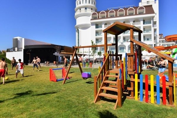 SZOLGÁLTATÁSOK: medence napernyőkkel és napozóágyakkal o fedett medence o csúszdák o főétterem o bárok (lobby, medence, strand) o animációs programok o esti show o élő zene o fitnesz o torna o jóga o aerobik o darts o asztalitenisz o backgammon o sakk o törökfürdő o szauna o gőzfürdő o wifi o térítés ellenében: SPA központ o törökfürdő kezelések o peeling o masszázs o fodrászat o üzletek o mosoda o orvosi szolgáltatás o autókölcsönzés o vízi sportok a strandon