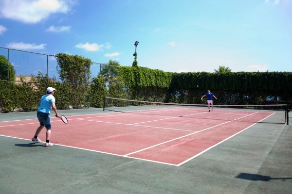 |Forró napokon kettő medence - egy benti és egy kinti - gondoskodik a hűsítő élményről. A vízicsúszda kicsiknek és nagyoknak is élményt nyújt. A vendégek zavartalan pihenéséről kényelmes nyugágyak és napernyők gondoskodnak. Ezen kívül van egy medence- és snackbár is. A szálláson változatos szabadidős tevékenységeket kínálnak, mint például kerékpározást/ mountain bike-ozást, teniszt, boccia-t, strandröplabdát, kosárlabdát, íjászatot és Nordic walkingot. Vízisíelés, jet-skyzés és banánozás a partnerek kínálatában szerepel. Az üdülőterület számos beltéri sportolási lehetőséget kínál, többek között edzőtermet, asztali teniszt, darts-ot, gimnasztikát és aerobikot, valamint felár ellenében bowlingot is. A létesítmény wellnessrészlegének szolgáltatásai: szauna és törökfürdő, valamint felár ellenében rendelkezésre áll egy gyógyfürdő, egy szépségszalon és masszázs kezelések. A szabadidős kínálatban szerepelnek továbbá: az élő zene, egy diszkó, egy miniklub és egy minidiszkó. Copyright GIATA 2004 - 2025. Multilingual, powered by www.giata.com for client no. 703822
