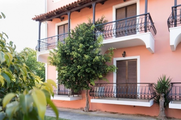 Fekvése: Laganas a sziget fővárosától kb. 10 km-re, a sziget déli részén található, széles homokos stranddal rendelkező mozgalmas, pezsgő életű üdülőváros, számtalan tavernával, bárral, étteremmel és diszkóval. A sziget egyik leghosszabb egybefüggő homokos tengerpartján a vízi sportok széles választéka áll rendelkezésre. Laganas csendesebb részén, a mozgalmas főutcájától kb. 500 m-re, a tengerparttól és a homokos strandtól pedig mindösszesen 130 méternyire épült, rendkívül kedvelt, modern apartmanház. Szupermarket az apartman mellett, a szállás közelében több üzlet, taverna, bár, diszkó is található.