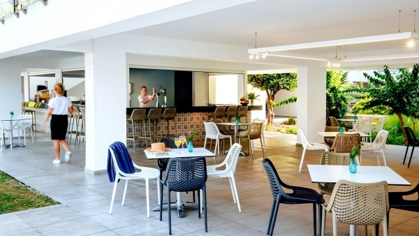 A ,,Minden benne van" ellátás keretében a reggeli (7.00-10.00), az ebéd (12.30-14.30) és a vacsora - márciusban, októberben és novemberben 18.30-21.00, áprilistól szeptemberig 19.00-21.30 között - az Elea főétteremben, büfé formájában kerül felszolgálásra. A nap folyamán 10.00 és 18.00 óra között snackek érhetők el a Mylos All Day Snacks bárban, míg alkoholmentes és helyi alkoholos italokat 10.00 és 24.00 óra között a kijelölt bárokban szolgálnak fel. Az all inclusive szolgáltatás igénybevételéhez a karszalag viselése kötelező.
