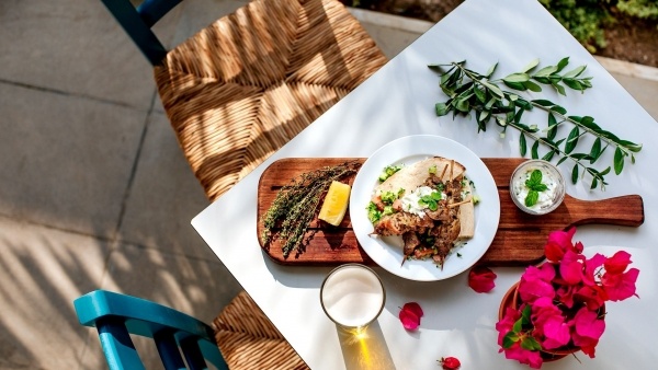 A szálloda változatos étel- és italkínálattal várja vendégeit. A fő étterem, az Elea, büfé jellegű ételeket kínál helyi és nemzetközi konyhából, ahol etetőszékek és gyermekmenü is rendelkezésre áll, így a családok számára is ideális. A Mesogios ? la carte étterem mediterrán specialitásokkal várja a vendégeket, előzetes foglalás mellett. A kikapcsolódásról és a frissítő italokról több bár gondoskodik: a hangulatos 1900 Lounge bár, a Mylos All Day Snacks bár, valamint két medence melletti bár, ahol a nap bármely szakában kellemes italokat és könnyű ételeket fogyaszthatnak a vendégek. A ,,Minden benne van" ellátás keretében a reggeli (7.00-10.00), az ebéd (12.30-14.30) és a vacsora - márciusban, októberben és novemberben 18.30-21.00, áprilistól szeptemberig 19.00-21.30 között - az Elea főétteremben, büfé formájában kerül felszolgálásra. A nap folyamán 10.00 és 18.00 óra között snackek érhetők el a Mylos All Day Snacks bárban, míg alkoholmentes és helyi alkoholos italokat 10.00 és 24.00 óra között a kijelölt bárokban szolgálnak fel. Az all inclusive szolgáltatás igénybevételéhez a karszalag viselése kötelező.