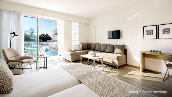 A lakosztályok (kb. 65 m?) két hálószobát és egy nappalit kínálnak, erkéllyel és környékre néző kilátással, míg a medencés lakosztályokból közvetlen kilátás nyílik a medencére. A deluxe medencés lakosztályok (kb. 43 m?) elegáns, világos terekben, hálószobával és külön nappalival rendelkeznek, a medencére néző erkéllyel. A superior családi szobák medencével (kb. 35 m?) szintén tágasak, erkéllyel és medencére néző kilátással. Az egyágyas szobák (kb. 26 m?) a standard szobák felszereltségével megegyező kényelmet kínálnak, a környékre néző kilátással.