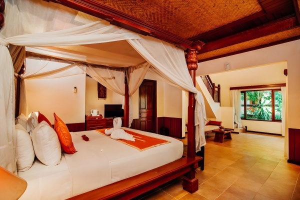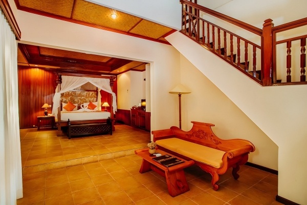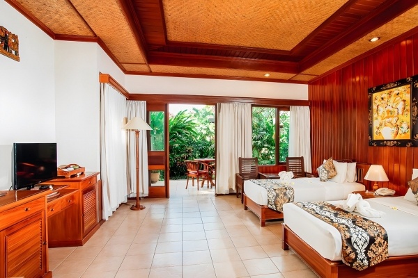 A deluxe szoba körülbelül 42 m?-es, kényelmes életteret kínál két fő számára, pótágy elhelyezésének lehetőségével. A szoba légkondicionált, fürdőszobájában kád, zuhany, WC, hajszárító és kozmetikai készlet áll rendelkezésre. A felszereltség része a vezeték nélküli internet, a műholdas televízió, a telefon, a kávé- és teakészlet, valamint egy üveg víz. A bútorozott terasz kellemes kilátást nyújt a gondozott kertre.