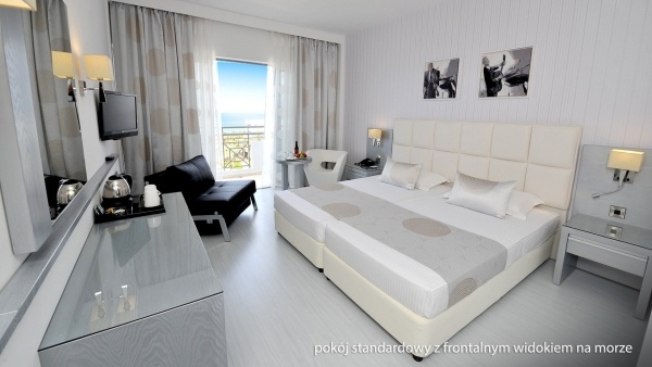A szobák modern berendezésükkel és kellemes hangulatukkal biztosítják a pihentető tartózkodást. A 2 fős szobák kb. 23 m?-esek, légkondicionáltak a nyári szezonban és fűthetők télen. Mindegyikhez fürdőszoba tartozik káddal vagy zuhanyzóval, WC-vel, hajszárítóval és kozmetikai készlettel. A kényelmet vezeték nélküli internet, műholdas televízió, telefon, széf, kávé- és teakészlet, valamint üdvözlésként üdítő és ásványvíz szolgálja. A szobák erkélyesek, asztallal és székekkel berendezettek, kilátásuk a környékre, oldalról vagy közvetlenül a tengerre néz. Igény szerint kis hűtő vagy minibár is elérhető, a fogyasztás külön fizetendő. A felsőbb szobák kiegészülnek köntössel, papuccsal és kávéfőzővel, valamint frontális tengerre néző panorámával. A deluxe szobák hasonló felszereltségűek, tengerre vagy oldalról tengerre néző kilátással, elegáns fürdőszobával és prémium kiegészítőkkel. Az Executive Suite kb. 50 m?-es, külön hálószobával és nappalival, hidromasszázs káddal, két televízióval és DVD-lejátszóval felszerelt. A tágas erkélyről gyönyörű kilátás nyílik a tengerre, így a szállás tökéletes választás a kényelemre és eleganciára vágyó vendégek számára.
