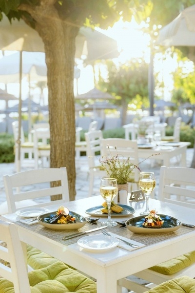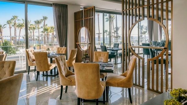 A szálloda változatos gasztronómiai élményeket kínál több éttermében és bárjában. A Drops Casual Dining étteremben mediterrán ízeket felvonultató büféebédek várják a vendégeket, míg a Thea étterem svédasztalos reggeliket és vacsorákat kínál helyi, mediterrán és nemzetközi fogásokkal, tematikus estekkel és látványfőzéssel. Az ? la carte éttermek közül a Shoga ázsiai specialitásokat, a Mercato olasz ételeket, a Pelagos görög és ciprusi konyhát, a Route 66 Bar & Grill pedig amerikai ízeket kínál - mindegyik előzetes asztalfoglalással látogatható, a Mercato és a Pelagos éttermek májustól októberig tartanak nyitva. Vacsoránál minden étteremben elvárt a formális öltözet: a férfiak számára hosszú nadrág, vállat takaró ing és zárt cipő kötelező. Vegetáriánus és gluténmentes ételek kérésre elérhetők. A vendégek kényelmét hat bár szolgálja, köztük kettő a medencénél, egy a lobbi területén és egy a tengerparton. Az all inclusive prémium ellátás keretében svédasztalos reggeli (7.00-10.00) a Thea étteremben, ebéd (12.30-14.30) a Drops Casual Dining étteremben, valamint vacsora (19.00-22.00) a Thea étteremben vagy a választott ? la carte étteremben fogyasztható, előzetes foglalással. Napközben meleg és hideg snackek (10.00-23.00), kávé, tea és sütemény (16.00-17.00) is rendelkezésre állnak a kijelölt bárokban. Válogatott alkoholmentes italok, valamint helyi és importált alkoholos italok fogyaszthatók 10.00 és 00.00 között. Az all inclusive prémium szolgáltatások igénybevételéhez a karszalag viselése kötelező.