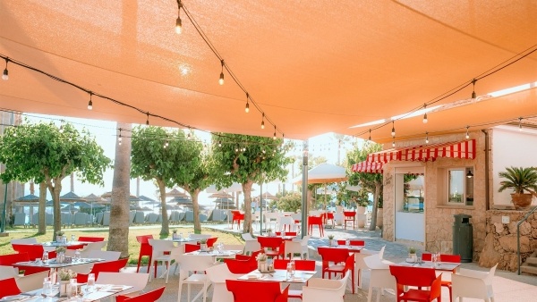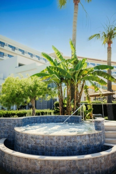 A szálloda közvetlen közelében található nyilvános, homokos-kavicsos strand enyhén lejt a tenger felé, ezért kényelmesen megközelíthető és ideális a fürdőzéshez. A part megközelítése a szálloda területén keresztül lehetséges, védőcipő viselése ajánlott. A vendégek számára napernyők, napozóágyak és matracok térítésmentesen állnak rendelkezésre, előzetes foglalás mellett, a strandtörölközők letét ellenében igényelhetők. Emellett a közelben egy másik, Kék Zászló minősítéssel rendelkező, homokos strand is található, ahol a napernyők és napozóágyak díj ellenében vehetők igénybe.
