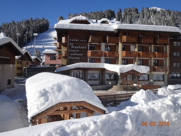 A Hotel St. Raphael Madonna di Campiglio központjában található, mindössze néhány perc sétára a fő sífelvonóktól, köztük a Cinque Laghi és a Spinale kabinos liftektől. Ezek a felvonók közvetlen hozzáférést biztosítanak a Skirama Dolomiti Adamello Brenta kiterjedt, több mint 150 km-es pályarendszeréhez. A síterep változatos lejtőket kínál kezdőknek, haladóknak és profi síelőknek egyaránt, a könnyű, panorámás pályáktól a meredek fekete szakaszokig. A közeli Grost? és Pradalago magasabban fekvő részei a szezon végéig hóbiztos síelést nyújtanak. A sírégió összeköttetésben áll Folgarida-Marilleva és Pinzolo pályáival, így akár több völgyet is be lehet síelni egy nap alatt. A településen síiskolák, felszereléskölcsönzők és modern felvonórendszer áll rendelkezésre. A pályák és liftek gyorsan elérhetők gyalog vagy síbusszal, így autó használata nem szükséges. A szezon általában decembertől április elejéig tart stabil hóviszonyok mellett.