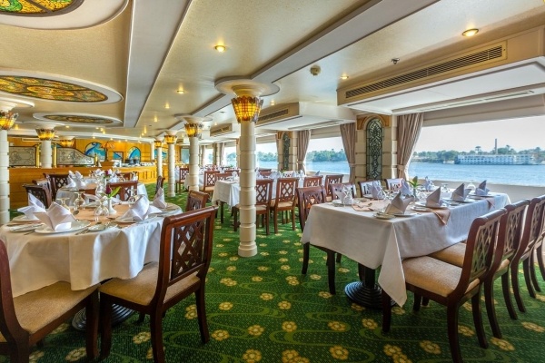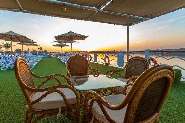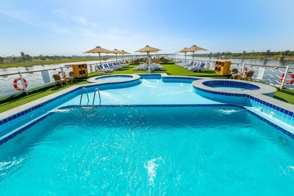 Általános leírás: A hajó modern, jó minőségű, kényelmes bútorokkal van berendezve. A hatalmas napozóterasz úszómedencével, fedélzeti bárral, kellemes kikapcsolódást nyújt. A hajó halljából az út folyamán csodálatos kilátás nyílik a Nílus partjára.