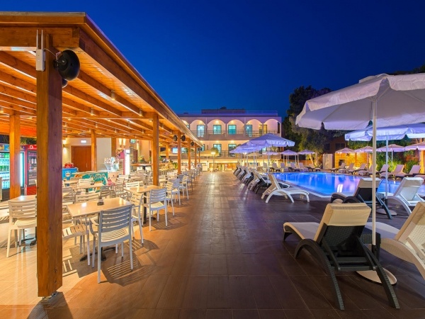 SZOLGÁLTATÁSOK: medence napernyőkkel és napágyakkal o 24 órás recepció o étterem o bár o nappali animációs program o élő zene (hetente egyszer) o fitnesz o TV-sarok o csomagmegőrző o wifi o térítés ellenében: masszázs o mini bolt o orvosi szolgáltatás o mosoda o autó- és kerékpárkölcsönzés o vízi sportok a strandon o játékszoba o biliárd o görög estek (hetente egyszer)