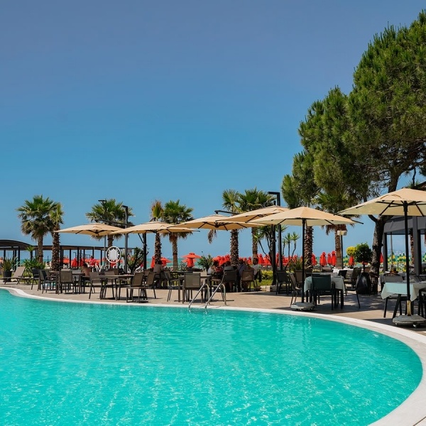 A szálloda vendégeit egy körülbelül 350 m? alapterületű medence várja, amelyhez egy 60 cm mély gyermekpancsoló rész is tartozik, így a család minden tagja kellemesen kikapcsolódhat. A medence körül elhelyezett nyugágyak és napernyők a hotel vendégei számára ingyenesen használhatók, biztosítva a pihentető és kényelmes kikapcsolódást.