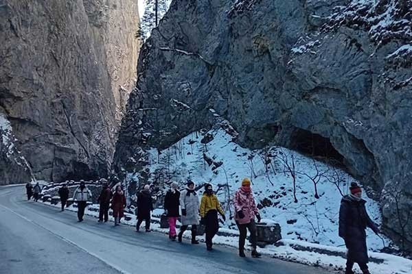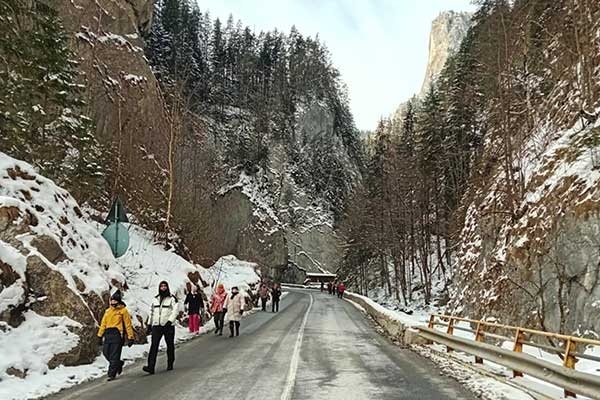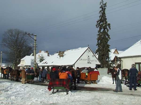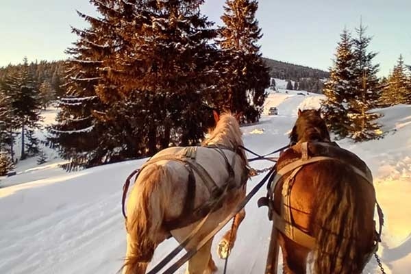 2. nap: Reggeli után találkozó a Cserekert Fogadó előtt, majd elindulunk megtekinteni Hargita megye legnépesebb városát Gyergyószentmiklóst. Utunkat az ország egyik legszebb látogatható hegyszorosa felé vesszük, a Békás-szorosba. A nyomasztó magasságú függőleges falak, a hegyi patakok, a nagyobb és kisebb vízesések, illetve a barlangok képezik a Békási-szoros természeti kincses ládájának gyöngyszemeit. A Gyilkos-tóhoz a Hagymás-patak völgyén keresztül juthatunk el. A legendák övezte tó 983 méter magasan terül el, és nem véletlenül választották meg Erdély egyik csodájának. Miután visszatértünk a fogadóhoz a vendégek fahéjas forralt borral, pálinkával, fánkkal melegíthetnek be az előttük álló útra. Miután mindenki kényelmesen elhelyezkedett a lovas szánon, elindul a karaván. A kivert, havas úton a lovak táltos paripaként repítik a vendégeket a Hargita irányába. A falut elhagyva kinyílik a látóhatár, a szántóföldeket határtalan hótakaró borítja, melyen a napsugár visszaverődik millió kis csillámban.
