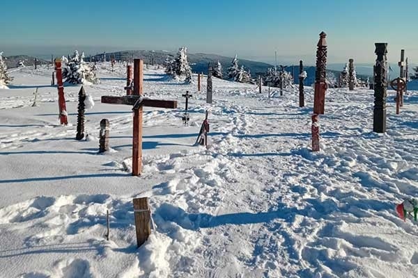 A Hargita, a székelység szent hegye, a téli tájban még felségesebbnek, óriásibbnak tűnik.