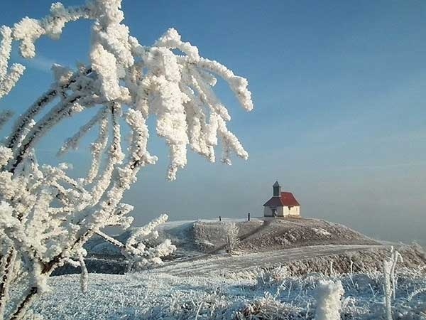 Az úti cél a Pogányvár alatti tisztás, ahol rövid sétát teszünk a ház körüli erdőben, a havas fenyők csöndjében magunkba szívhatjuk az ősi hegy nyugodtságát.