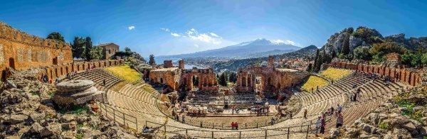 Kirándulás az ETNA-ra, Európa legmagasabb, aktív vulkánjára. Fakultatív lehetőség: utazás kabinos felvonóval és terepjáróval kb. 3.000 méteres magasságba. A festői TAORMINA-ban a város nevezetességét, a görög színházat tekintjük meg, mely Csontváry festménye alapján ismerős számunkra. Szállás Taormina környékén.
