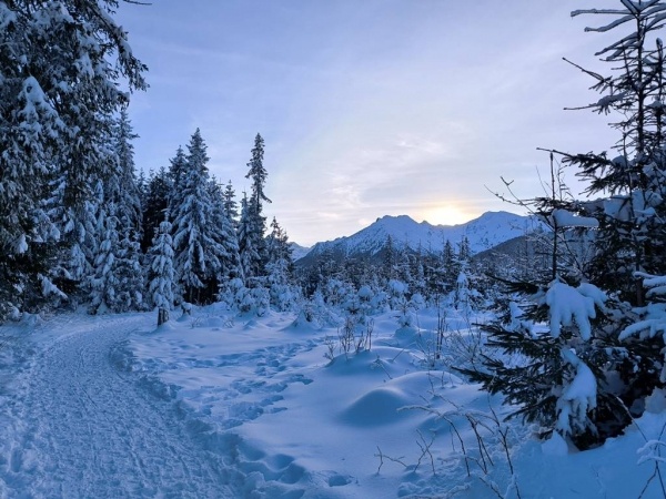 Ezen a napon az ilyenkor már általában havas téli környezetben egész napos, de nem megerőltető túrát teszünk a Tátra egyik legszebb völgyébe, a Halastavi-völgybe, amely kellemes téli időben különösen vonzó arcát mutatja. A völgy parkolójából (984 m) indulva a behavazott aszfaltúton kb. 2,5 óra alatt érünk fel a Halastóhoz (Morskie Oko, 1395 m), amely a Tátra legnagyobb tava, és amely ilyenkor természetesen teljes felületén be van fagyva.