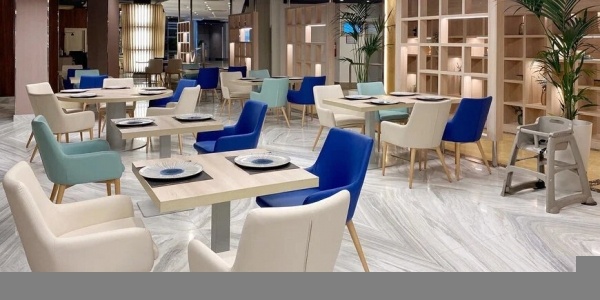 A szállodában egy étterem működik, ahol svédasztalos reggeli, valamint ebéd és vacsora ? la carte formában érhető el. Az étterem mediterrán konyhát kínál, és vegetáriánus, valamint gluténmentes étrend is elérhető. A gyermekek számára gyerekülések biztosítottak. A szállodában három bár található: a lobbyban, a medencénél (snackekkel), valamint a The Level részlegen, amely kizárólag a The Level vendégei számára hozzáférhető. Teljes ellátás igényelhető felár ellenében, a reggeli 7:30-10:30 között svédasztalos, az ebéd 13:30-15:45 között, a vacsora pedig 20:30-22:30 között ? la carte formában fogyasztható az étteremben. Az italok ebédhez és vacsorához külön fizetendők.