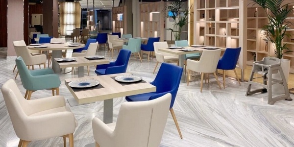 A szállodában egy étterem működik, ahol svédasztalos reggeli, valamint ebéd és vacsora ? la carte formában érhető el. Az étterem mediterrán konyhát kínál, és vegetáriánus, valamint gluténmentes étrend is elérhető. A gyermekek számára gyerekülések biztosítottak. A szállodában három bár található: a lobbyban, a medencénél (snackekkel), valamint a The Level részlegen, amely kizárólag a The Level vendégei számára hozzáférhető. Teljes ellátás igényelhető felár ellenében, a reggeli 7:30-10:30 között svédasztalos, az ebéd 13:30-15:45 között, a vacsora pedig 20:30-22:30 között ? la carte formában fogyasztható az étteremben. Az italok ebédhez és vacsorához külön fizetendők.