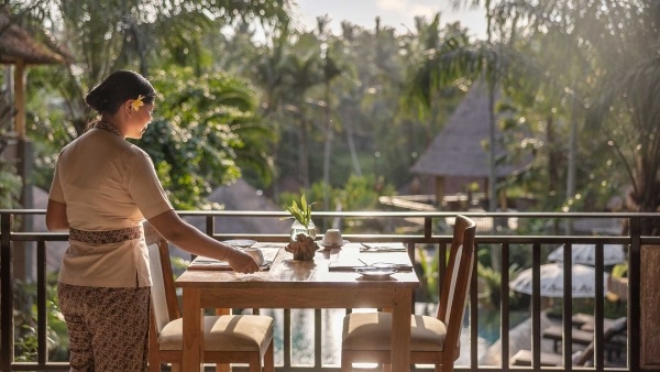 A szálloda Ubud központjától körülbelül 4 km-re fekszik, így könnyen elérhetők a város kulturális és gasztronómiai látnivalói, miközben a környék nyugalma is megmarad. Éttermek, bárok és boltok nagyjából 1 km-re találhatók, Denpasar mintegy 20 km-re, Kuta pedig körülbelül 28 km-re helyezkedik el. A denpasari repülőtér hozzávetőleg 34 km távolságra található. A vendégek kényelmét ingyenes szállodai busz biztosítja Ubud központjába, amely 9.00 és 22.00 között közlekedik, a pontos menetrendet és a járatok gyakoriságát pedig a szálloda határozza meg.