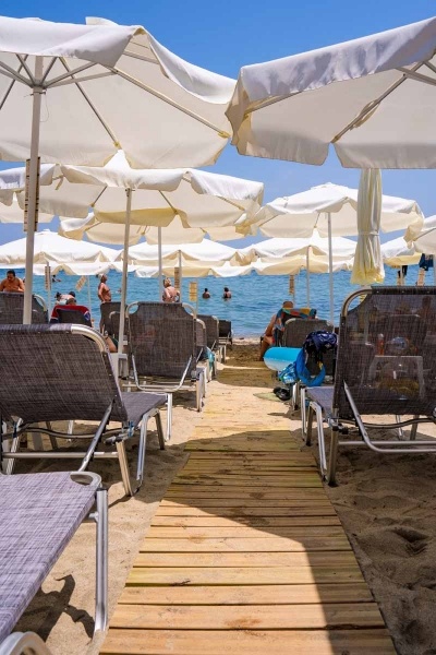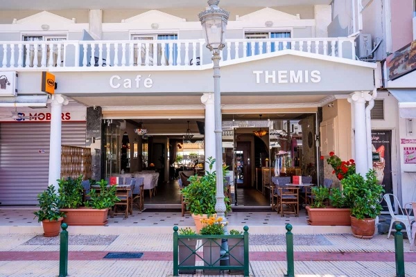 Közvetlenül a tengerparton épült háromcsillagos hotel, mely Paralia központjában található a Panorama Hotel mellett.