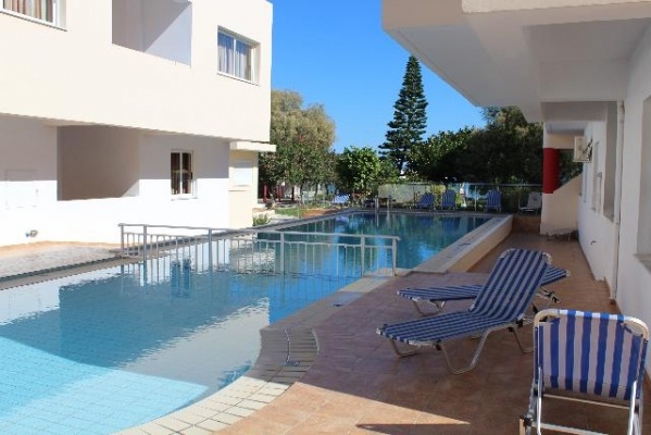 A mozgalmasabb Ag. Marina településen elhelyezkedő, családi irányítású, háromszintes (lépcsős) apartmanház. A 16 szobás épület elhelyezkedése kitűnő, hiszen a tengerparttól kb. 50 méterre található, melyre a kertjén keresztül lehet lejutni. A stúdiók a régebbi épületben helyezkednek el.