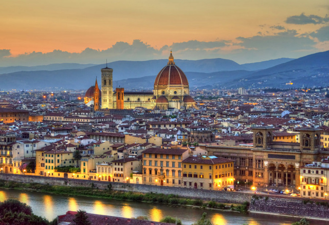 Reggeli után Firenzébe utazunk. Gyalogos városnézésünk során megismerkedünk a legfontosabb látnivalókkal: érintjük a Dóm teret (Dóm, Keresztelőkápolna, Harangtorony), sétálunk a középkori városnegyedben (Dante háza, lakótornyok), Signoria tér (Palazzo Vecchio, Loggia dei Lanzi), Santa Croce templomot melyben Michelangelo, Machiavelli, Galileo és Rossini sírja, valamint Giotto freskók találhatók belülről is megtekinthetjük, majd az Öreg hídhoz (Ponte Vecchio) érünk. Fakultatív lehetőségként bemegyünk a világhírű Uffizi képtárba.