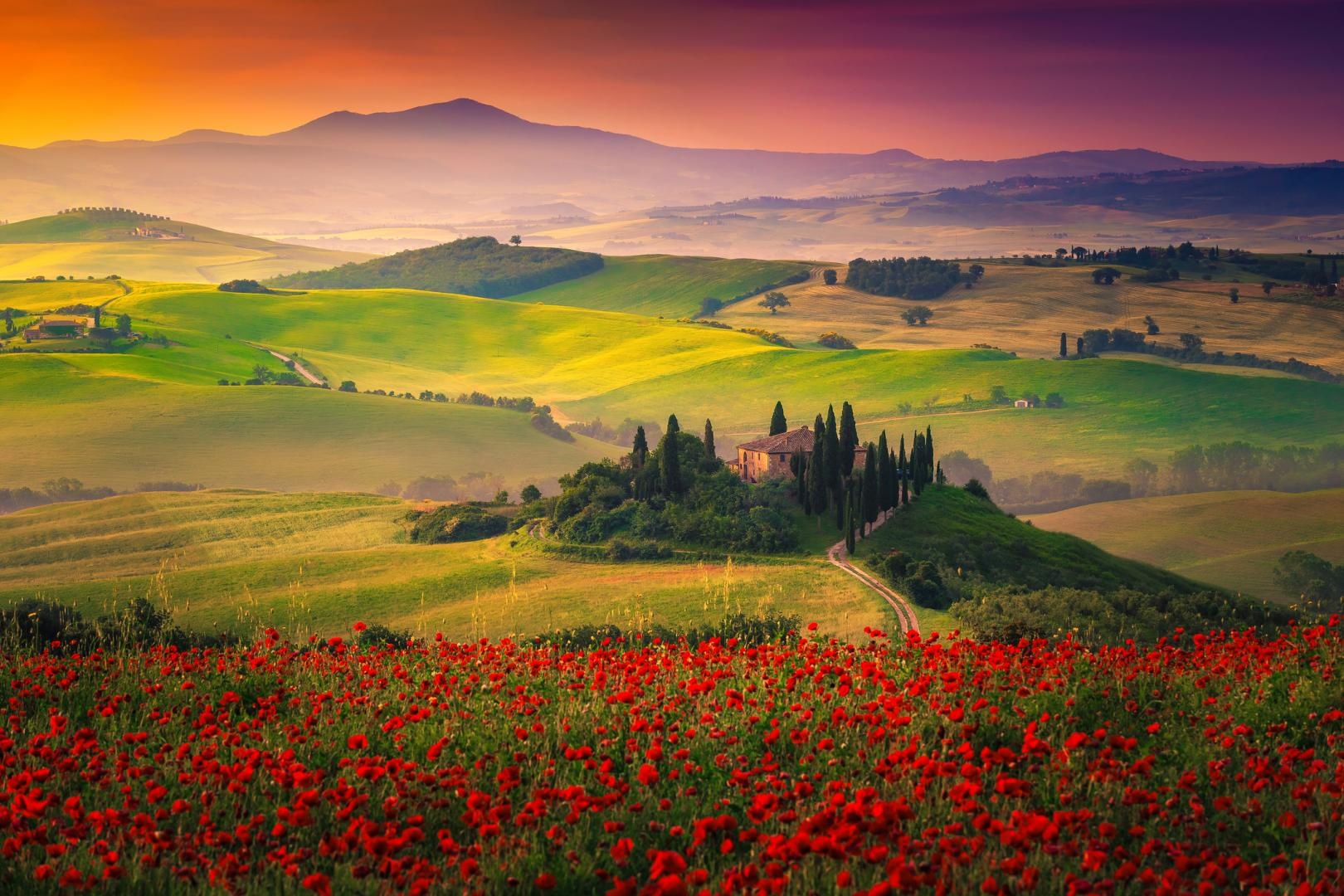 Elutazás Budapestről a kora reggeli órákban a Székesfehérvár-Siófok-Nagykanizsa útvonalon. Folyamatos utazás rövid pihenőkkel Szlovénián keresztül Közép-Olaszországba, ahol Itália egyik legfestőibb régiója vár ránk. Úticélunk a reneszánsz szülőföldje, a mesés Toszkána, a magasba törő ciprusok, középkori kisvárosok és a Chianti hazája. Toszkánát említve először szinte biztosan a szalmabálákkal tarkított jellegzetes toszkán dombok, finom borok, elbűvölő kisvárosok képe ötlik fel mindenkinek a szeme előtt. A régió számtalan látnivalót rejt és utazásunk alkalmával több UNESCO Világörökséghez tartozó helyszínt is felkeresünk. Érkezés a szálláshelyre a kora esti órákban.