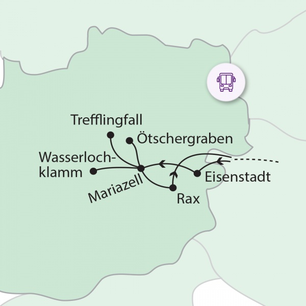 Délelőtt Mariazell kellemes hangulatával, nevezetességeivel ismerkedünk meg. A kegytemplom a magyarok egyik legismertebb zarándokhelye, ahol Mindszenty bíborost is eltemették. Mellette halad el a híres Mária-út. Ezt követően a Keresztúton felmegyünk a Kálvária dombra, majd vissza a főtérre. Itt található a híres mariazelli gyomorkeserű italt gyártó cég üzlete, valamint a mézeskalács készítő műhely. Ebédidőben étkezési lehetőség a városban. Délután autóbusszal megyünk a nehezebb túrát is kedvelő utasainkkal a Wasserlochklamm szurdokhoz, melynek különlegessége a több lépcsőben lezúduló vízesések sorozata. Egy-egy zuhatag 20-40 méteres. A kanyonban lépcsőkkel kiegészített túraúton tudunk feljutni a leglátványosabb szakasz végéig. Aki esetleg nem szeretne a vízesés tetejéig túrázni, ő korábban visszafordulhat, mivel ugyanazon az útvonalon jövünk vissza.
