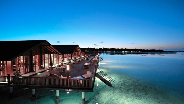 A fő étterem, a Bageecha, a 'villa' és 'deluxe tengerparti villa' típusú szobák vendégei számára kínál büféételeket és nemzetközi konyhát. A The Lagoon étterem a 'víz villa' típusú szobák vendégeit szolgálja ki. Az ? la carte éttermek közé tartozik az olasz Al Tramanto, a tengeri gyümölcsöket kínáló Farumathi és a japán Fukuyama Teppanyaki.