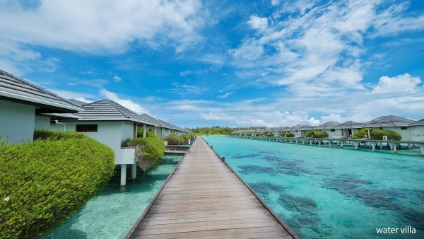 A vízi villa kb. 73 m? alapterületű, két fő számára ideális, és egy pótágyat biztosít. A villa egyénileg szabályozható légkondicionálással rendelkezik. A fürdőszobában zuhanyzó, WC és hajszárító található. A vendégek számára műholdas televízió, telefon, minibár (naponta vízzel feltöltve), széf, kávé- és teafőző készlet, valamint ingyenes kiságy áll rendelkezésre 2 év alatti gyermekek számára, amelyet előzetesen kell igényelni. A terasz napozóágyakkal van felszerelve, és közvetlen lejáratot biztosít a tengerhez, valamint tengerre néző kilátást nyújt.