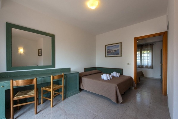A kétágyas stúdiók saját fürdőszobával rendelkeznek (kád vagy zuhany, wc, hajszárító), továbbá légkondicionálóval, SAT/TV-vel, balkonnal vagy terasszal, valamint alapfelszereltségű konyhasarokkal vannak ellátva. Az apartmanok ugyanezt a felszereltséget kínálják, azonban külön hálószobából és egy nappaliból állnak konyhasarokkal, és akár 4 fő elhelyezésére is alkalmasak.