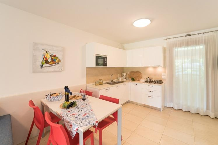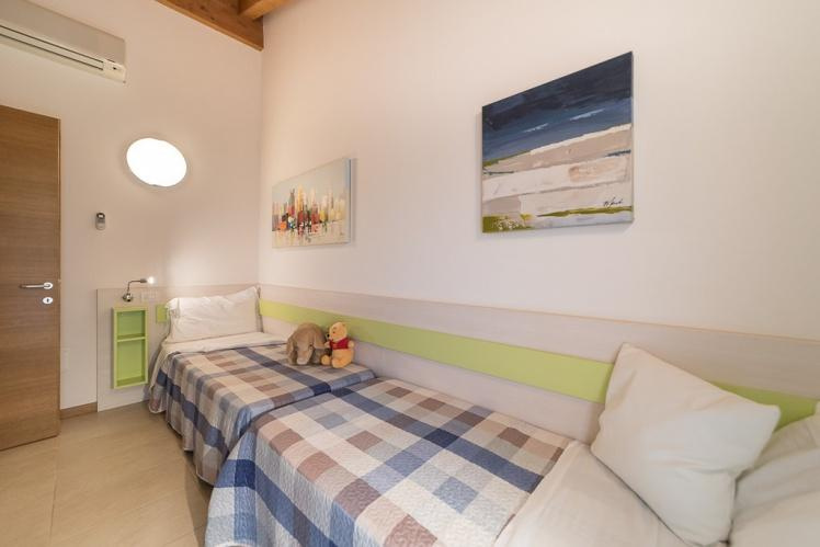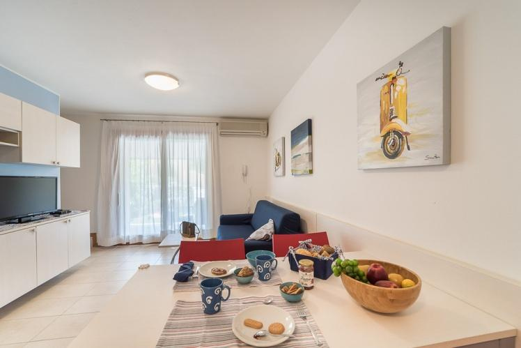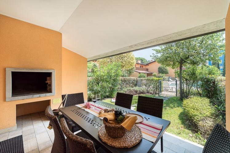 Fekvése: Lignano Sabbiadoro-n található, teljesen zárt üdülőfalu 28 db kétszintes épületből áll, melyek egy nagy, központi zöldövezetben találhatóak medencével és napozó terasszal. A komplexum kb. 300 méterre a tengerparttól és kb. 500 méterre a központtól található. Minden házhoz tartozik saját veranda, kerti kandalló, elkerített privát kert, fedett parkoló vagy garázs, légkondicionálás, sat-TV, mosógép, mosogatógép, széf és videós kaputelefon.