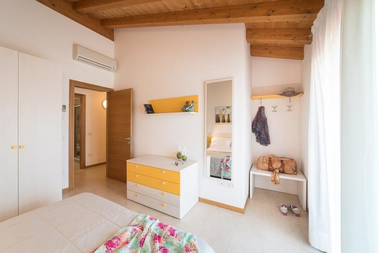 Apartmanok: C6: 4-6 fő részére 2 szinten; Földszinten: kert, fedett terasz grillel, nappali  kétszemélyes  kanapéval,  főzősarok,  fürdőszoba,  tároló  helyiség.  Első emeleten: 1 szoba franciaággyal, 1 kétágyas szoba, fürdőszoba, terasz, fedett kültéri parkoló vagy garázs.