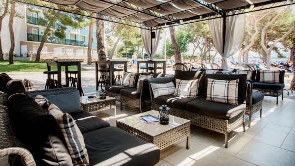 A szálloda közelében található nyilvános strandok mindegyike köves, enyhe lejtéssel a tenger felé. A strandok Kék Zászlóval kitüntetettek, biztosítva a tisztaságot és biztonságot. A vízbe lépéshez ajánlott védőcipőt viselni. A strandok különböző jellegűek: van, ahol betonmólók segítik a fürdőzést, és ahol a sziklás, köves részek mellett a tenger könnyen megközelíthető. A látogatók napernyőket és napozóágyakat vehetnek igénybe, de ezekért térítés ellenében kell fizetni. A strandok mindössze kb. 50 m-re találhatók a sétánytól, így könnyen elérhetők a vendégek számára.