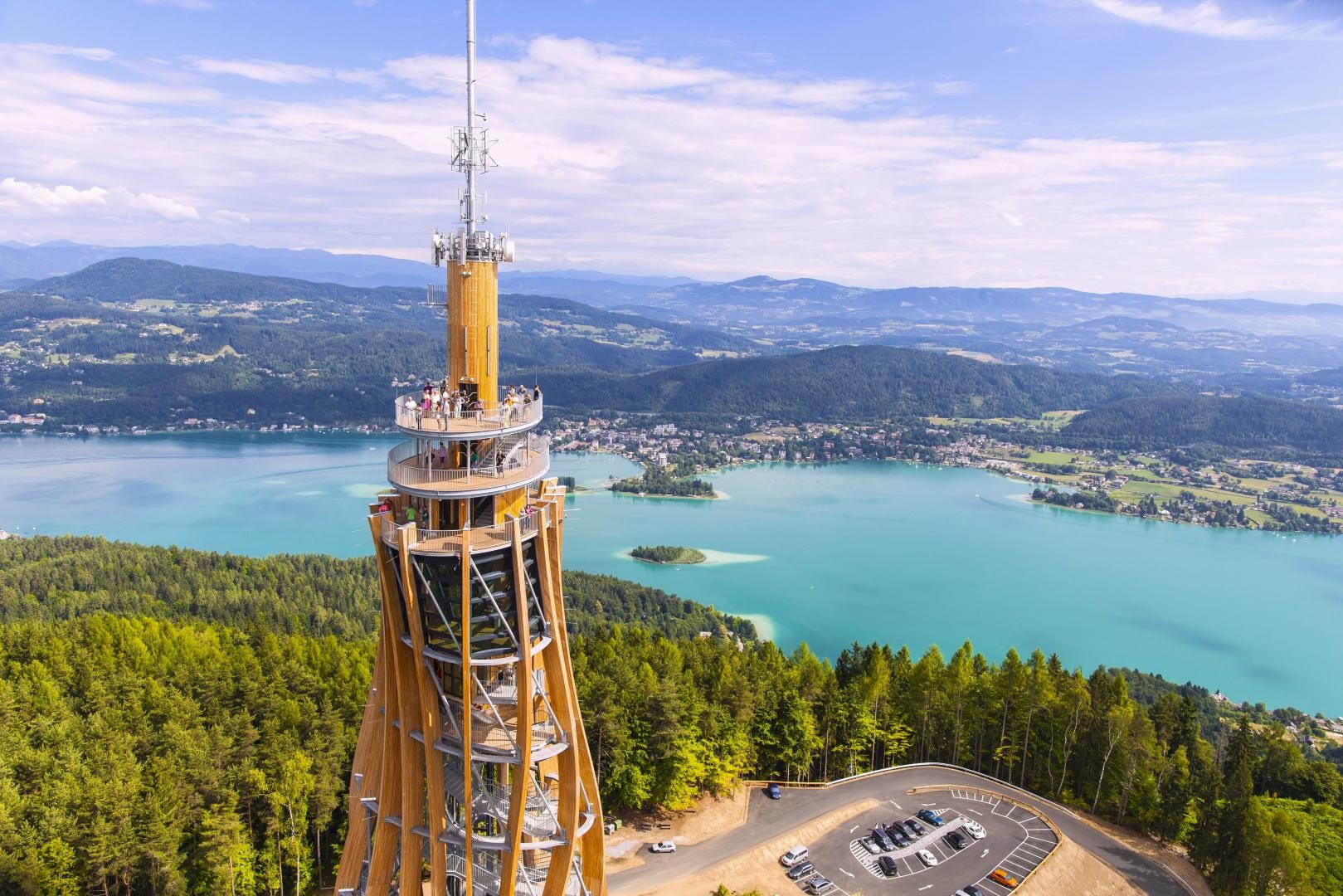 Indulás reggel 6.00 órakor Budapestről. Varázslatos utazásunk során, a kora délutáni órákban érkezünk az osztrák Alpok kapujába. Az első megállónk Graz, Ausztria egyik legelbűvölőbb városa.  A barokk palotákat és a futurisztikus épületeket harmonikusan ötvöző város számos rangos díjjal büszkélkedhet. Idegenvezetőnkkel felfedezzük az UNESCO világörökség részét képező óváros nevezetességeit. Majd tovább utazunk Karithia legszebb tavához, és a tó déli partján álló Pyramidenkogel kilátóba látogatunk (lifttel), melyről csodás panoráma nyílik a tóra (belépős). Vacsora időre érkezünk a szállodába, szállás elfoglalása és vacsora.