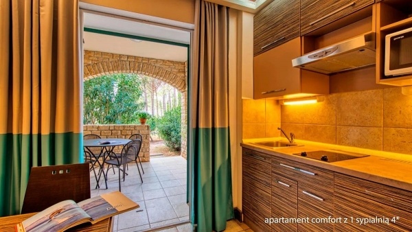 A 2019-ben teljes körűen felújított, modern és gondozott üdülőhely egy lenyűgöző, 100 hektáros területen helyezkedik el, és ideális választás mindazok számára, akik nyugodt környezetben, mégis kiváló felszereltséggel szeretnének pihenni. A létesítmény változatos szállástípusokat kínál: az épületegyüttesben 159 háromcsillagos és 319 négycsillagos apartman található, emellett a kempingterületen 374 mobilház és glamping lehetőség is rendelkezésre áll.