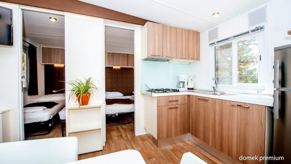 Premium ház - 3 hálószobával (6 fő, 1 pótágy lehetőséggel) Méret: kb. 35 m?, légkondicionált Helyiségek: 3 hálószoba, nappali, 2 fürdőszoba (zuhanyzó, WC) Felszereltség: Vezeték nélküli internet Műholdas televízió Felszerelt konyhasarok (gázfőző, mikrohullámú sütő, vízforraló, kávéfőző, hűtőszekrény, edények, evőeszközök) Terasz: Részben fedett, kb. 25 m? (asztal, székek, ruhaszárító) Felár ellenében: Kiságy 2 év alatti gyermek számára (előzetes rendelés szükséges, kb. 8 EUR/nap)x Zaton Holiday Resort - Mobile Homes - 5 éjszakásAz ár tartalmazza: Az ár tartalmazza